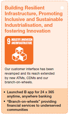 Our branches in rural hinterlands cater to hitherto underserved populations and we thereby promote wider financial inclusion. We have also deployed two mobile branches to cater to communities who are difficult to reach by traditional modes of banking. These mobile branches were also used in post-disaster situations during the year when physical branches in disaster hit areas were unable to function.