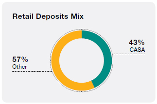 At the end of the year we had a somewhat low CASA ratio of 37%, across the Bank which was true industry-wide, due to the prevailing high interest rates. To counteract this, the Bank conducted special promotional campaigns to attract low cost funds, and the retail CASA ratio stood at 43%.